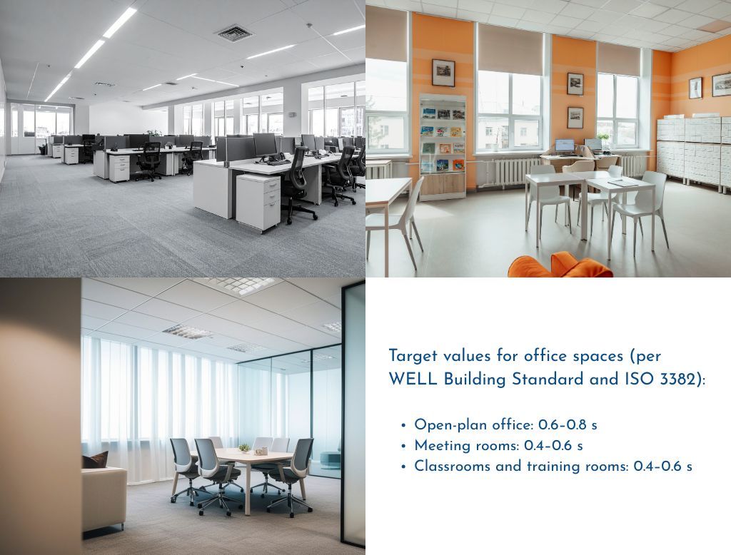 - Open-plan office: 0.6–0.8 s