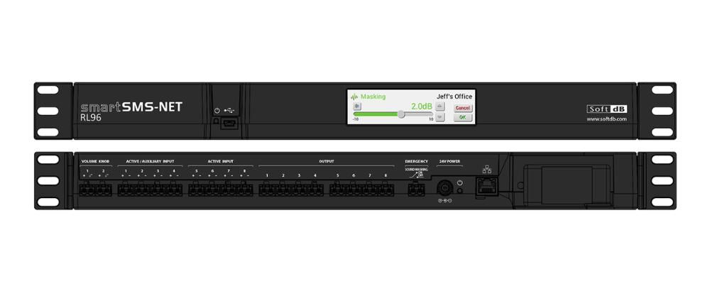 RL96 · Multizone Sound Masking Controller A five-floor system with 2,500 occupants and varying acoustic profiles across every floor isn't a plug-and-play install. The RL96 manages up to 8 independent zones from a single unit, each with its own EQ, adaptive masking response, and integrated paging/BGM. Facility teams can adjust levels by zone directly from a built-in touchscreen, no technician required.